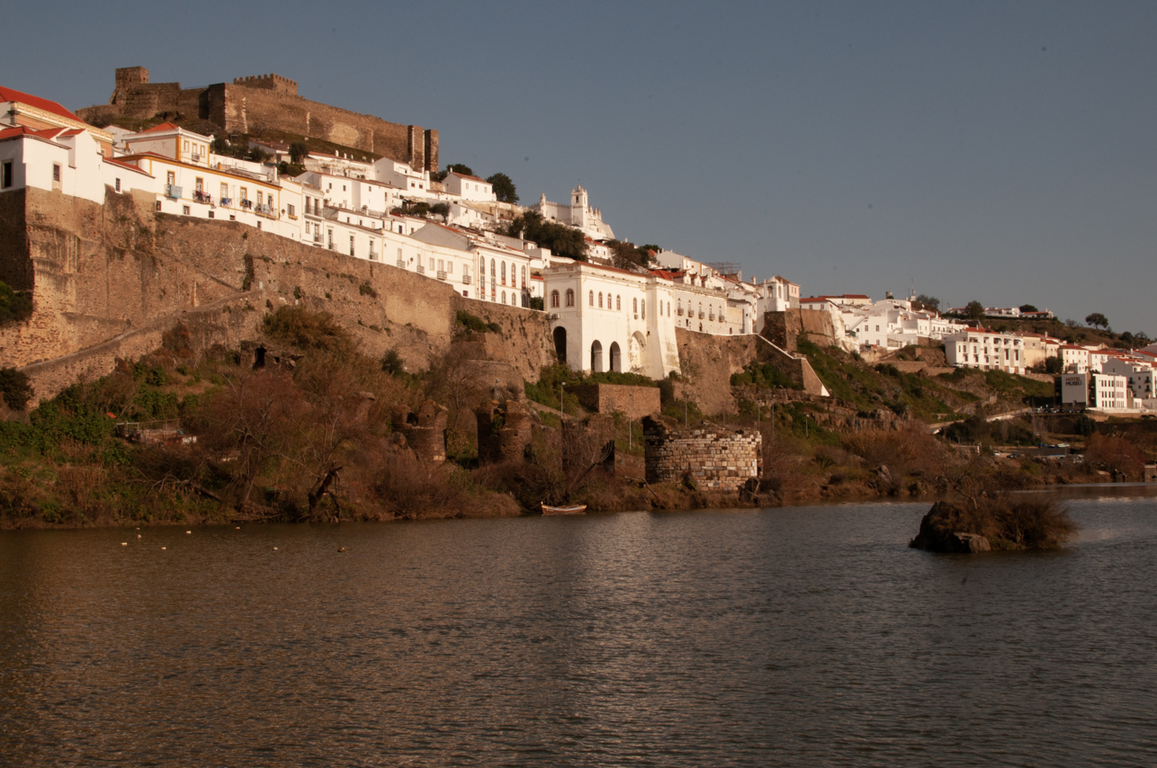 Une fois passé le dernier coude de cette remontée, le château de Mértola s’offre à nous, du fleuve nous avons une magnifique vue sur sa grande tour surplombant la ville. Chiko du Vendaval, le navire municipal qui remonte les touristes d’Alcoutim à Mértola pose ses filets depuis sa petite barque. Il nous guide jusqu’à notre ponton au pied de la ville. Il est l’un des derniers pêcheur du Rio, alors que celui-ci comptait encore de grandes communautés de travailleurs du fleuve il y a trente ans. Aujourd’hui, il n’y en a plus qu’un seul pêcheur qui vit de sa pêche et encore pendant les deux mois d’été les prises sont bien maigres. Il habite à Alcoutim, mais ça c’est une autre histoire.
