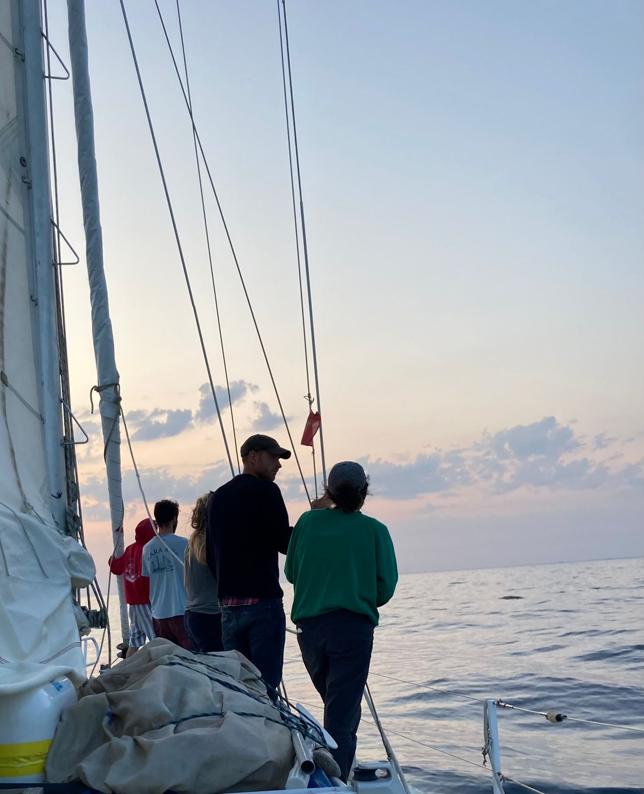 Katell me réveille à 6h15. C’est l’heure de prendre mon quart ! Je suis quand même bien reposée. Comme on est 7, on arrive à faire des quarts espacés d’environ 5h. Lucie va se coucher et tandis que je prends la barre, le vent faiblit… Quand Anna sort, on se lance dans une grande discussion sur la famille. Petite pluie, et arc en ciel ! Le soleil revient.