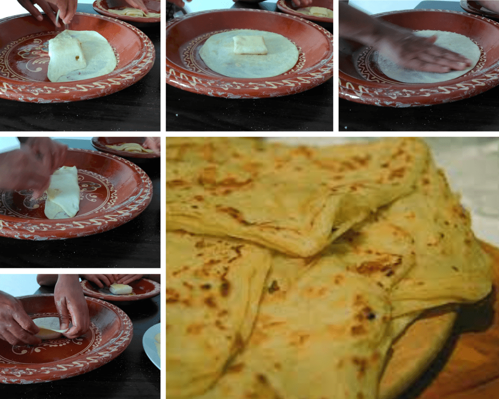 Vous pouvez faire la même recette, en fourrant les msemen de légumes ou viande. Mais ils se mangent aussi très bien nature, ou en tartinant tout ce qu’on veut dessus, salé ou sucré !!